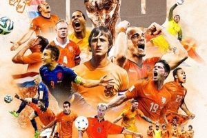 荷兰队晒出了荷兰传奇球星组成的海报,并写道:“世界杯还有100天开始!”