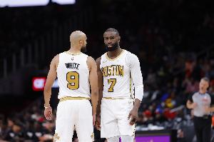 上半场比赛,凯尔特人10人轮换,并且全部得分,分别是杰伦·布朗13、豪泽9分、武切维奇7分、哈珀6分、谢尔曼5分、冈萨雷斯5分、科塔5分、沃尔什5分、怀特4分。
