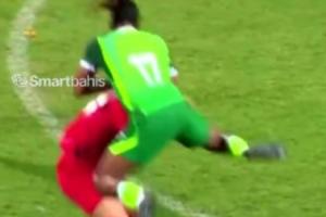 体育资讯04月01日讯 在友谊赛,约旦2-2尼日利亚的比赛第92分钟,尼日利亚前锋伊沃比在遭到对手不断拉拽下,愤怒地回头使用堪称“WWE招式”的动作干倒对手,被裁判红牌罚下。