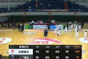 比赛开始,双方开场势均力敌,比分交替领先,北体大不断冲击内线频频得手,中国海大连投带罚强势回应,双方持续缠斗,比分始终紧咬,葛滢罚中两球后北体大突然哑火,近3分钟的时间里颗粒无收,中国海大打出7-0的攻击波以15-10领先结束首节。