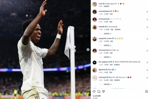 本场比赛维尼修斯再次破门,赛后他也在个人社媒晒出进球后跳舞庆祝的战平,配文写道:“舞蹈继续!”